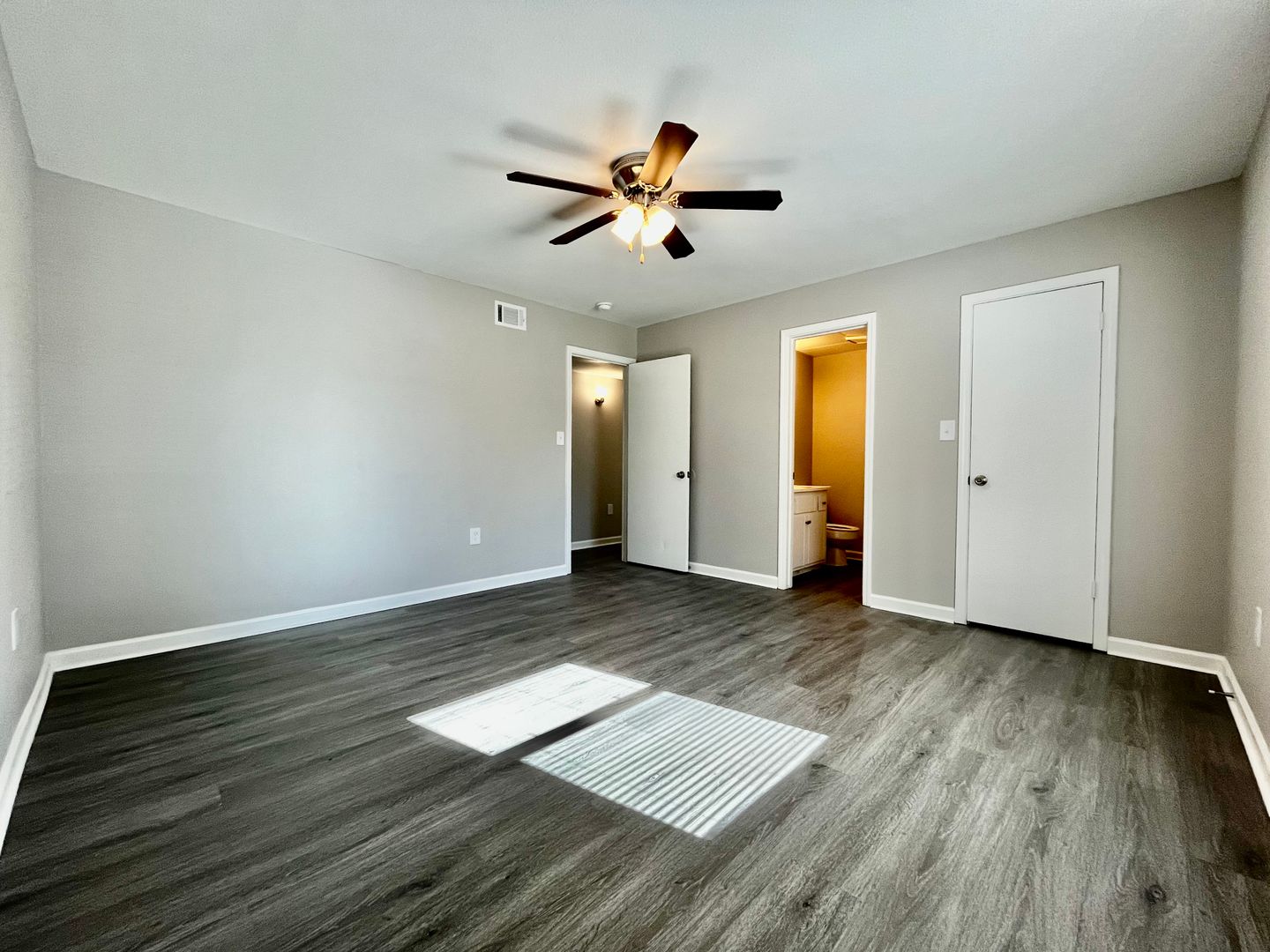 The master bedroom offers plenty of space, and has its own on suite bathroom with a modern feel!
